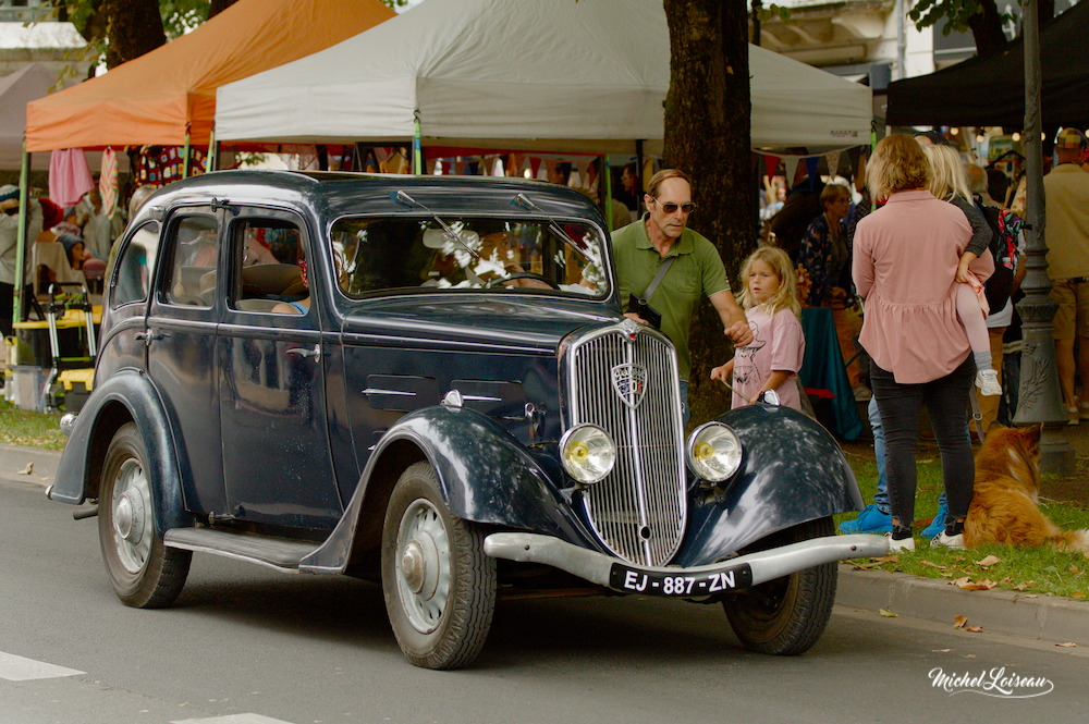 Au début des années 50, l'économie allemande reprend des couleurs et chez Mercedes-Benz, on conçoit et commercialise les premières automobiles de l'après-guerre. On adopte la ligne "ponton", appellation qui désigne une carrosserie qui intègre les ailes ainsi que les portes dans une seule surface. Le modèle photographié lors des Vintage Days de Périgueux est un modèle de luxe équipé d'un moteur à six cylindres. Il s'agit possiblement d'une 220 S.